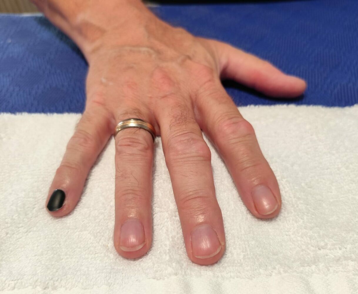 Einem Moment überlegen wir, wie es wohl sein wird, wenn ihn Kollegen und Freunde darauf ansprechen werden. Er meint: “ Ist doch prima, dann kann ich die Aktion erklären. Das ist es ja, was die Aktion mit dem lackierten Fingernagel bewirken soll. Aufmerksamkeit erregen, aufklären, ins Bewusstsein rufen.