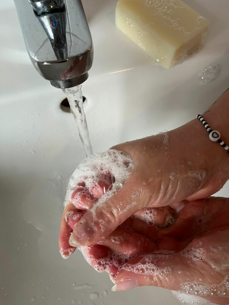 Also reinige jetzt deine Hände mit einem Spülmittel ohne Pflegestoffe, dies erkennst du an dem Pflegetropfen der auf einigen Spülmittel drauf ist. Dieses eignet sich dann nicht auch so wie Seife denn auch diese enthält pflegende Substanzen, um den natürlichen Schutzfilm der Haut wieder aufzubauen.