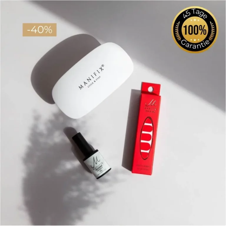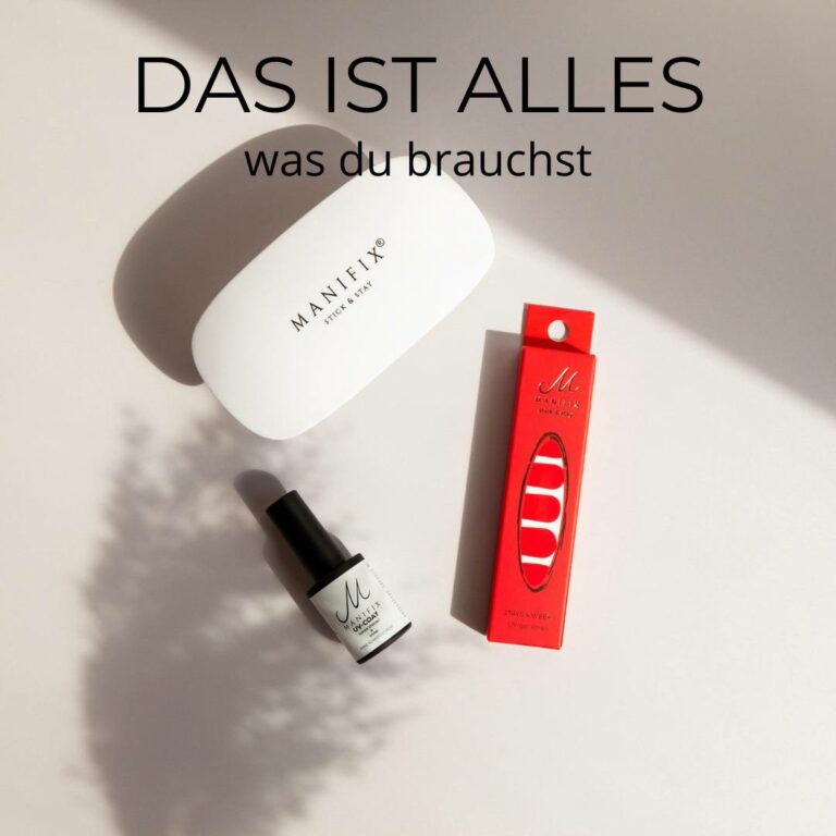 Wenn du die Nagelfolien von Manifix ausprobieren möchtest, benötigst du nur eine UV-Lampe, einen UV-Coat und die UV-Nagelfolien von Manifix. Alle drei Produkte sind in dem Starter-Set für nur 29,90€ enthalten. Wenn du schon eine UV-Lampe zuhause hast, kannst du auch die verwenden und der Starter-Set ohne UV-Lampe für nur 19,99€ nehmen. Mit dem Rabattcode Manilove bekommst du zusätzlich -25% auf alle Nagelfolien.